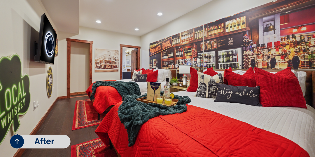 Rather than generic sleeping quarters, each room now feels intentional and immersive. Together, they create a home where every guest gets a unique experience—one that sparks conversation, nostalgia, and connection to Penn State the moment they walk in.